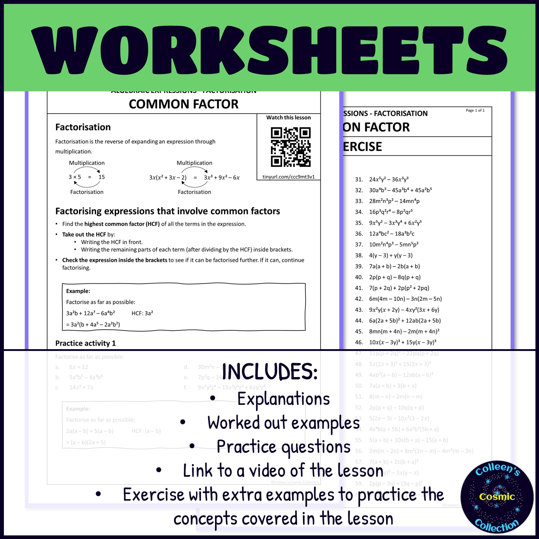 🧮 Topics Covered in This Factorising with Common Factors Resource: