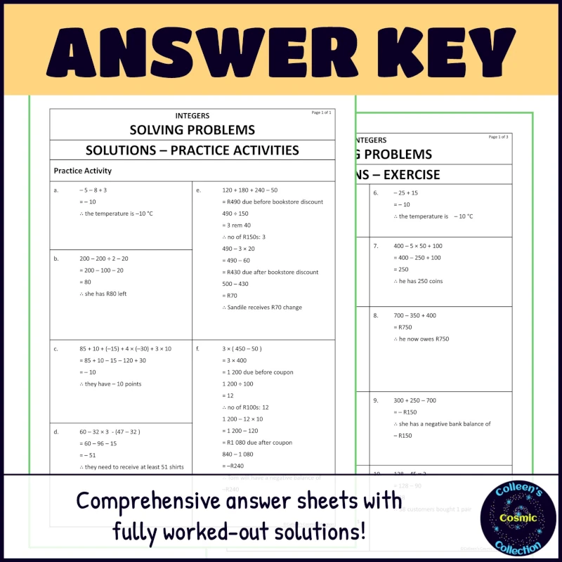 Invest in your students’ education with our Word Problems with Integers worksheet bundle. Equip them with the tools they need to excel in mathematics and gain confidence in their problem-solving abilities. Purchase today and watch your students’ mathematical skills flourish!